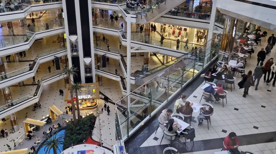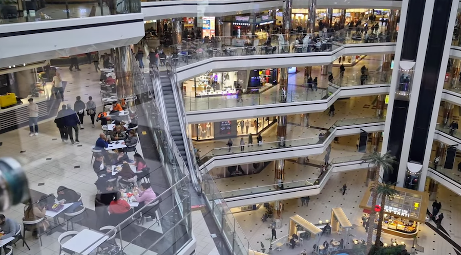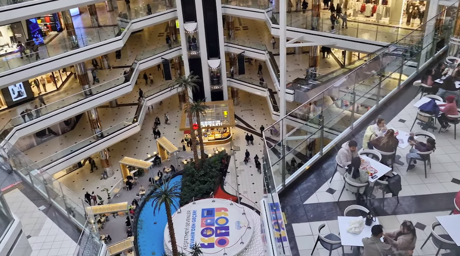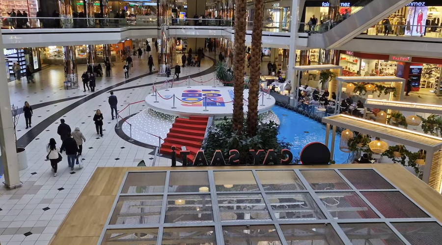 Buranın en ikonik, en akılda kalıcı mimari detayı hiç şüphesiz o devasa cam tavanı ve o tavanın tam ortasında asılı duran, dünyanın en büyük saatlerinden biri olan Dev Saat'tir. Katlar arası o bitmek bilmeyen yürüyen merdivenlerde süzülürken o saate bakmak, Cevahir'in yazılı olmayan ritüelidir.